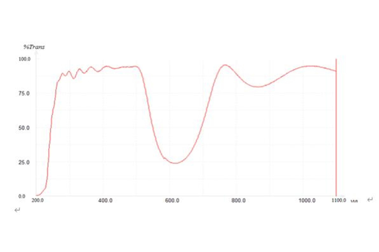 Infrapuna-optinen kvartsilevy: JGS3 on läpinäkyvä näkyvässä ja infrapunaspektrissä; 2600-2800nm kaistalla ei ole selvää absorptiokaistaa.